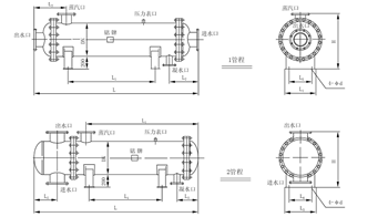 山东国信双纹管湍流换热器,有汽一水和水一水两种换热形式,一般用于采暖系统,空调系统,卫生热水系统及 其它工业用水的换热。本公司生产的双纹管湍流换热器具有体积小,占用空间少,易于搬运,结构紧凑的优点。为了适应不同的场地和用户要求,换热器有立式、卧式两种形式,以适应不同的位置和空间。以下是换热器两种形式的外形图:
